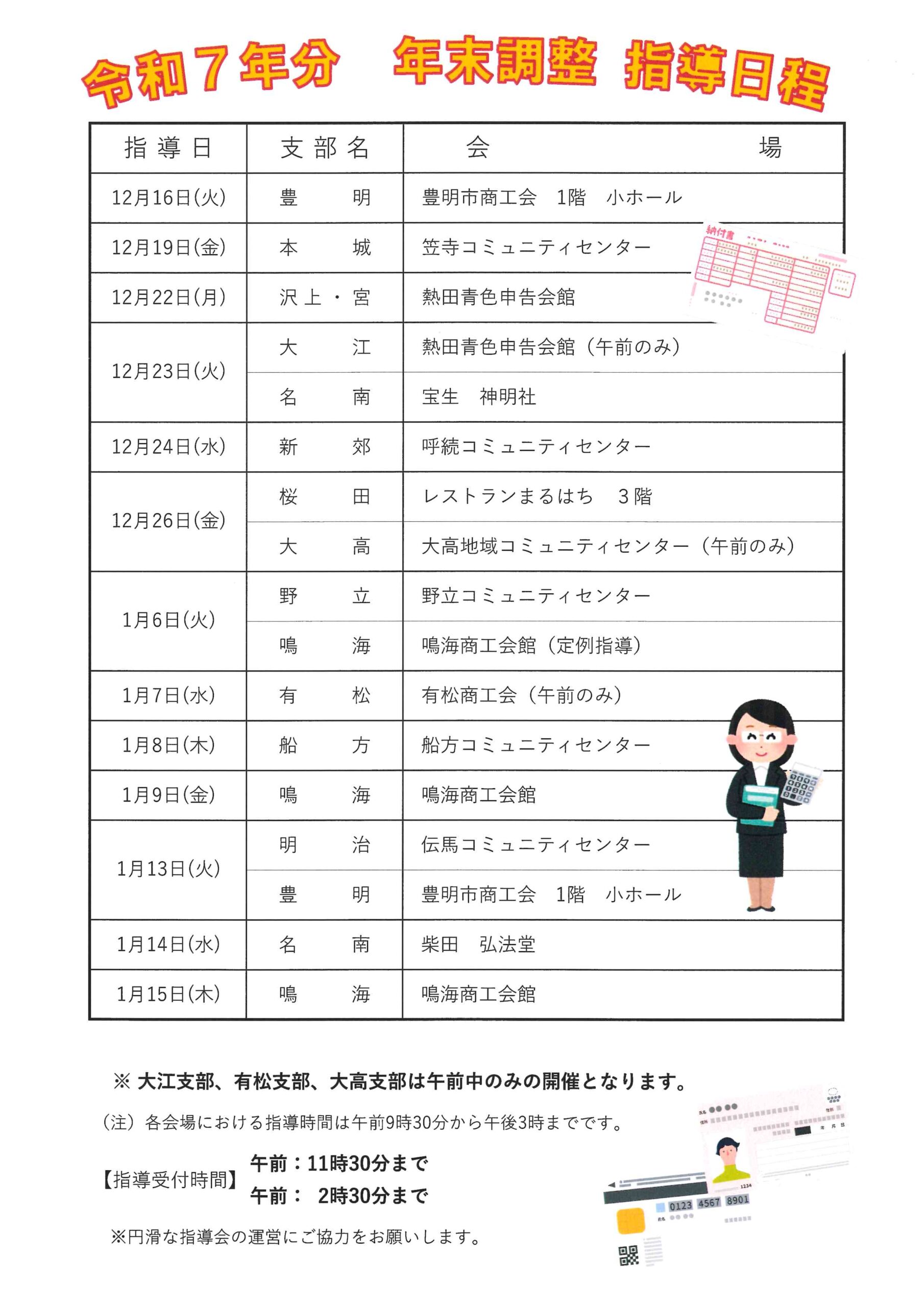 今年の年末調整は【103万円の壁】の見直しにより大幅に所得控除の金額や要件が変わりますので、皆さん必ず指導会または事務局での指導を受けていただきますようお願いいたします。